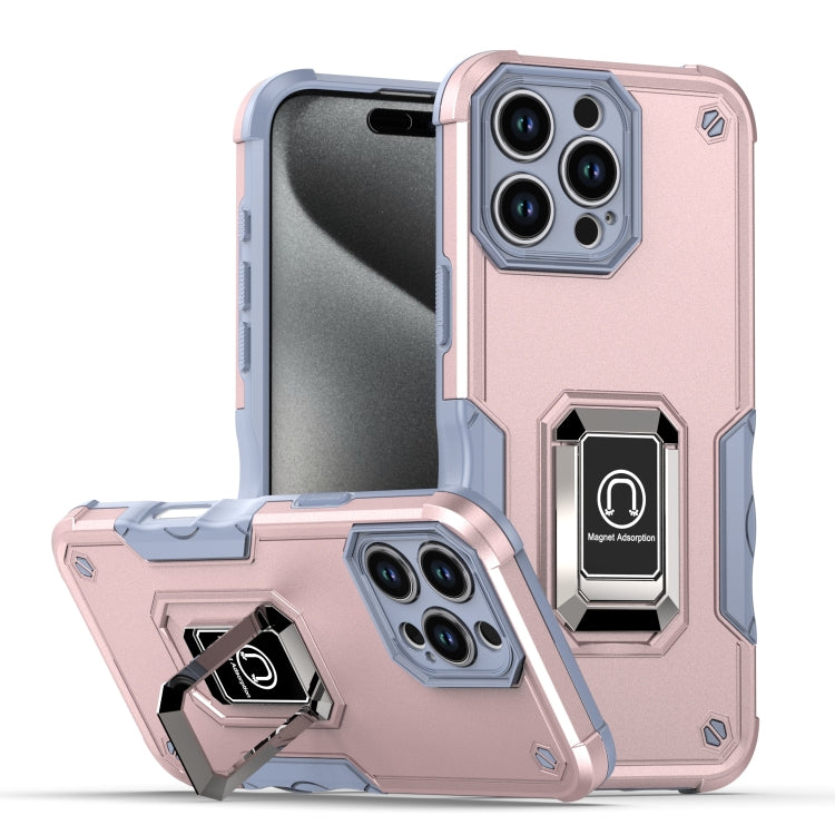 Funda Protectora para iPhone 16 Pro Max Antideslizante Prueba de Golpes Soporte de Anillo (Oro Rosa)