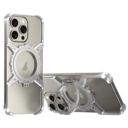 Estuche para Teléfono Metal con Soporte Magsafe Engranajes Mecánicos iPhone 16 Pro Max (Plateado)