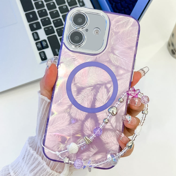 Funda para Teléfono TPU Magsafe para iPhone 16 con Textura Chapada y Película de Lente (Plumas Moradas)