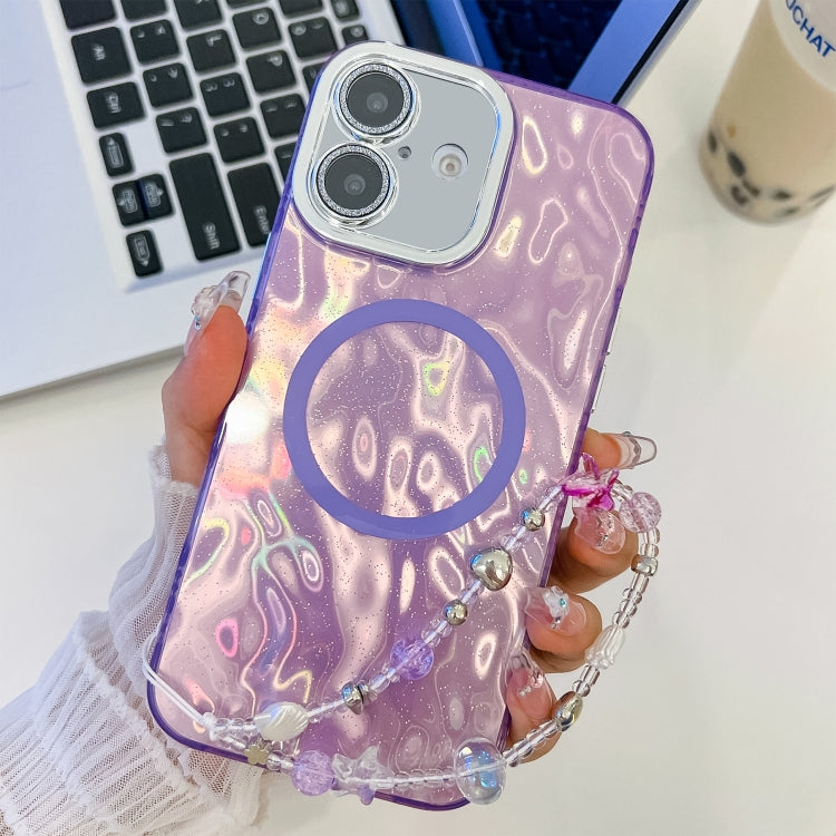 Funda para Teléfono TPU Magsafe con Película Lente Brillante para iPhone 16 (Arrugas Moradas)