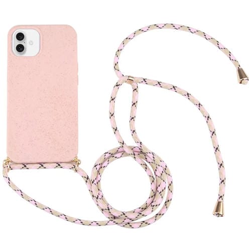 Funda TPU a Prueba de Golpes con Paja de Trigo para iPhone 16 con Cordón para el Cuello (Rosa)