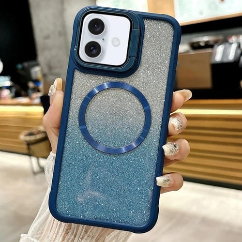 Funda híbrida Acrílico TPU con Purpurina y Degradado Grano de Cd para iPhone 16 (Azul)