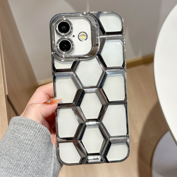 Funda para iPhone 16 Grabado Láser Galvanoplastia Panal de Abeja 3D Transparente TPU (Plateada)