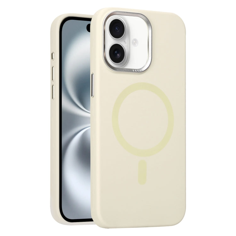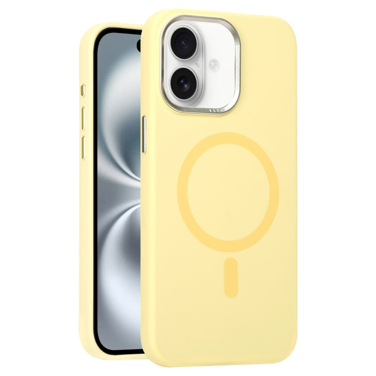 Funda de Silicona Líquida con Marco de Lente de Metal Magsafe para iPhone 16 (Amarillo Crema)