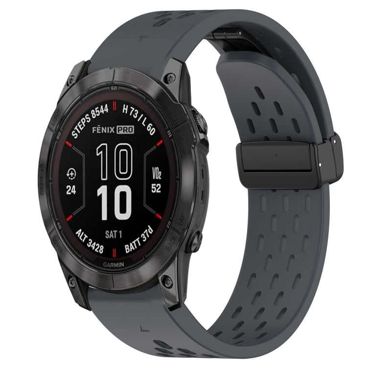 Correa de Reloj de Silicona para Garmin Fenix 7X con Orificios y Hebilla Magnética (Azul Oscuro)