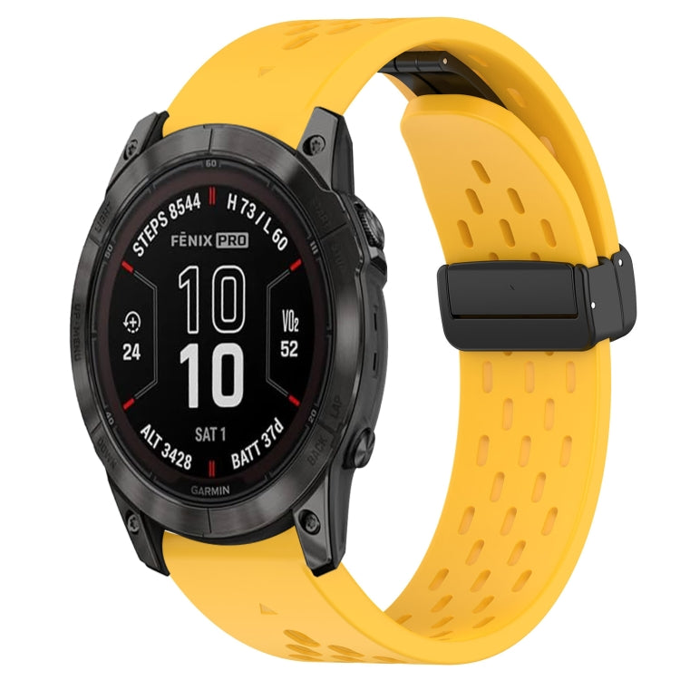 Correa de Reloj de Silicona para Garmin Fenix 7X 26mm con Orificio y Hebilla Plegable (Amarillo)