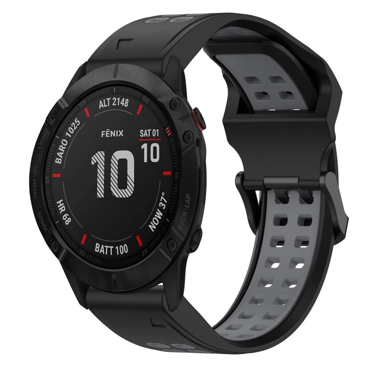 Correa de Reloj Garmin Fenix 6X 26mm silicona con hebilla inversa dos colores (Negro + Gris)
