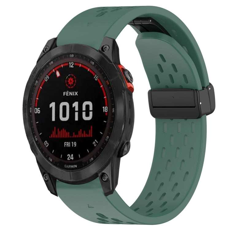 Correa de Reloj Garmin Fenix 7X Solar 26mm silicona con orificio y hebilla plegable (Verde Oscuro)