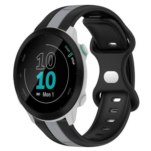 Correa de Reloj Garmin Forerunner 55 20mm Silicona Hebilla Mariposa (Negro + Gris)