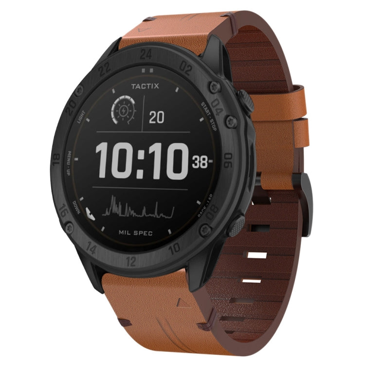 Correa de Reloj Garmin Tactix 7 Pro de Cuero con Hebilla de Acero 26mm (Marrón Claro)