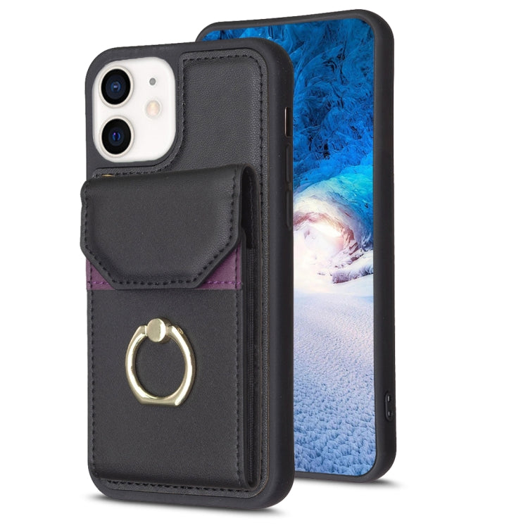 Funda para Teléfono Bf29 para iPhone 11 con Soporte para Anillo y Bolsa para Tarjeta (Negro)