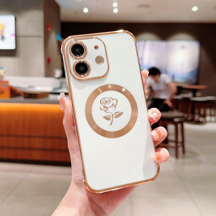 Funda para Teléfono iPhone 11 Magsafe con Flores de Rosas Laterales Galvanizadas (Blanco)