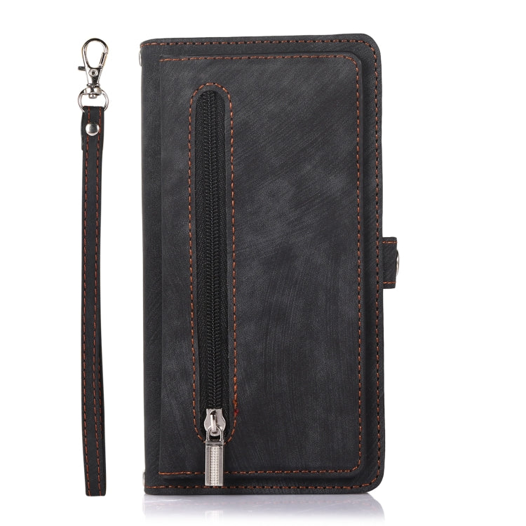Funda para iPhone 11 con Cremallera Ranura para Tarjeta Hebilla Monedero de Cuero (Negro)