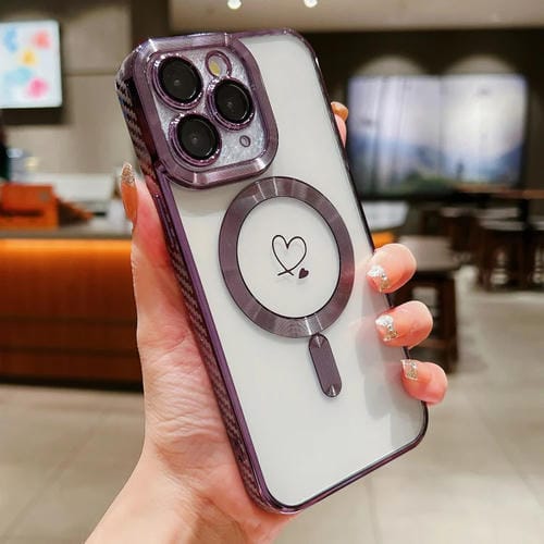 Funda para Teléfono TPU Loves iPhone 11 Pro Max Magsafe Revestimiento Fibra de Carbono (Púrpura)