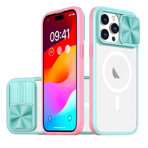 Funda para iPhone 11 Pro Max Cubierta Deslizante Acrílico PC TPU Magsafe (Azul + Rosa)