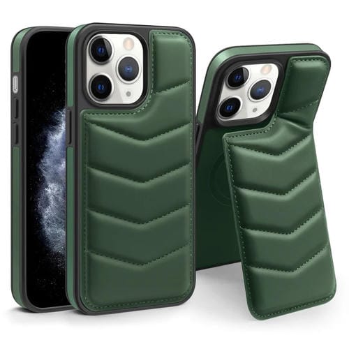 Funda para Teléfono iPhone 11 Pro Max Magsafe Soporte para Tarjetas Chaqueta de Plumas (Verde Oscuro)