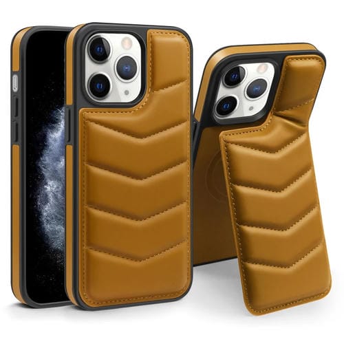 Funda para Teléfono iPhone 11 Pro Max Magsafe con Soporte para Tarjetas y Chaqueta de Plumas (Marrón)
