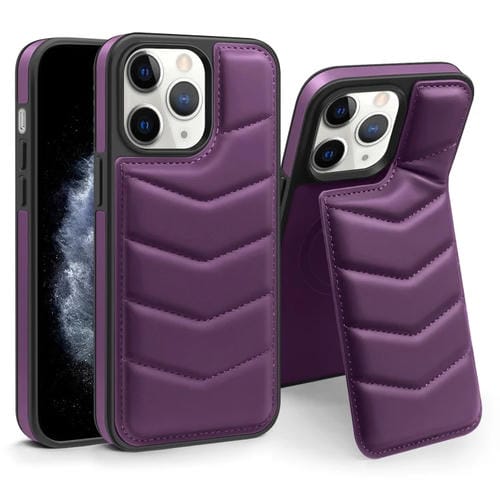 Funda para Teléfono iPhone 11 Pro Max Magsafe con Soporte para Tarjetas y Chaqueta de Plumas (Morado)