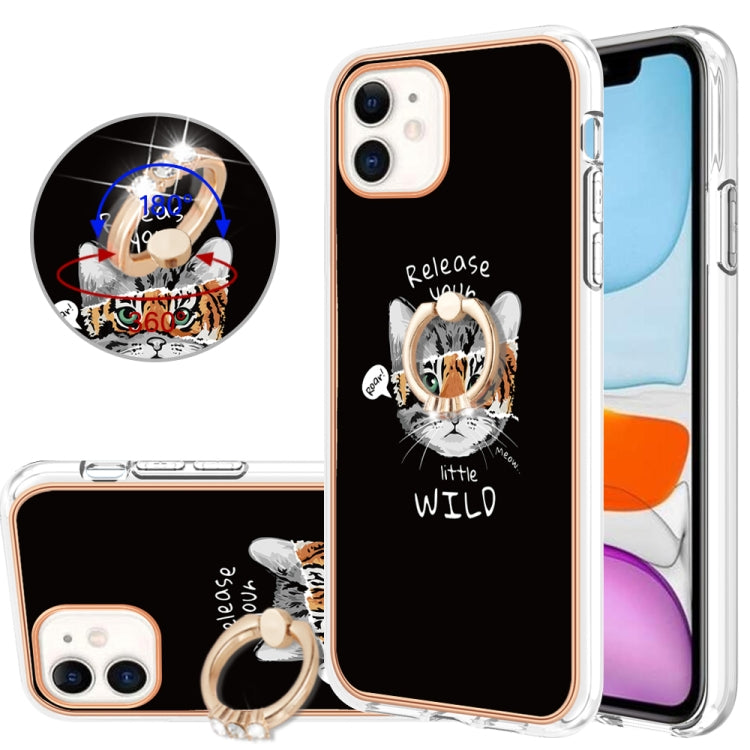 Funda para iPhone 11 Galvanoplastia IMD de Doble Cara con Soporte para Anillo (Estampado de Leopardo)