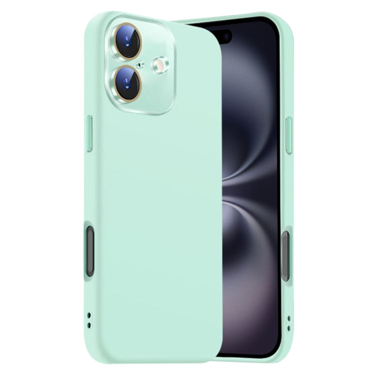 Funda de silicona líquida para iPhone 16 Plus con nanoLente (Cian Claro)