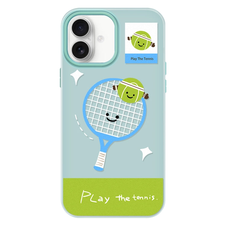 Funda híbrida TPU y policarbonato iPhone 16 Plus Play Tennis (Verde Claro)