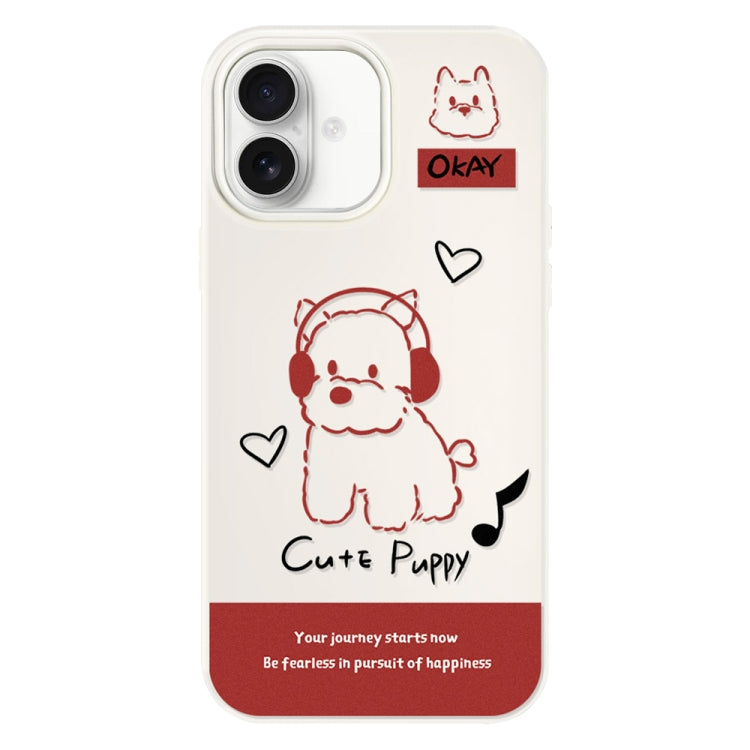 Funda híbrida TPU Policarbonato para iPhone 16 Plus con diseño Auriculares Perro (Blanco)