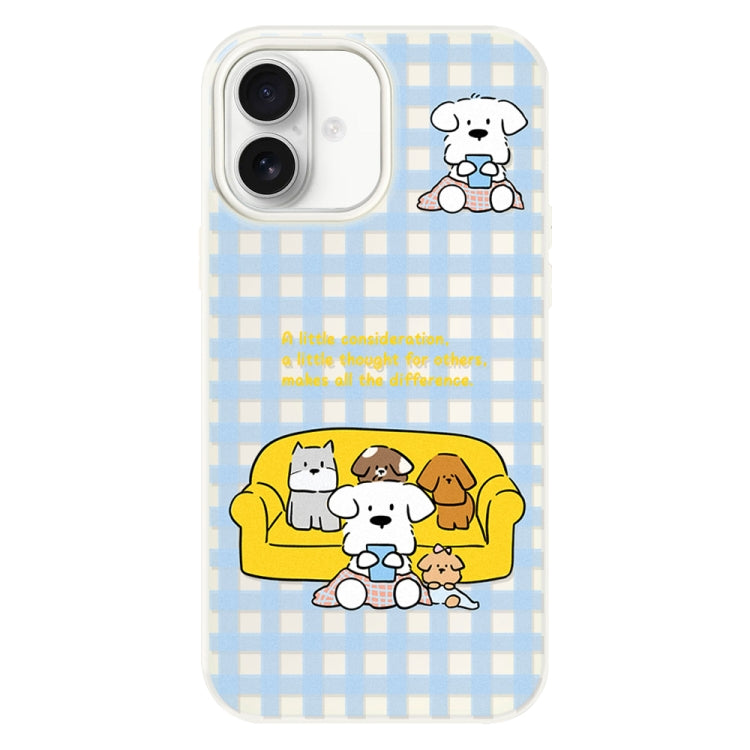 Funda híbrida TPU Policarbonato iPhone 16 Tacto sedoso (Familia de Perros en Blanco)