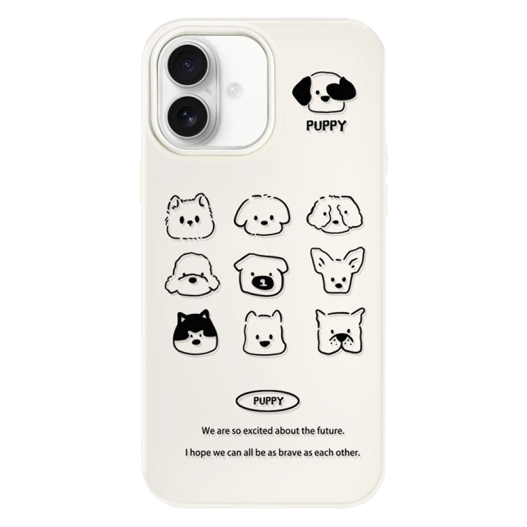 Funda híbrida TPU Policarbonato iPhone 16 Cachorro de Razas Múltiples (Blanco)