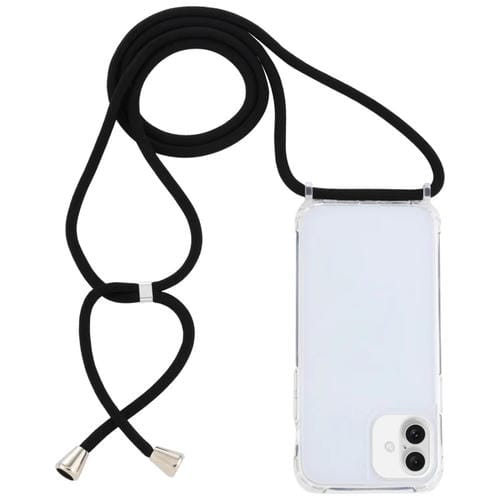 Funda protectora iPhone 16 Plus acrílico Transparente a prueba de golpes con cordón (Negro)