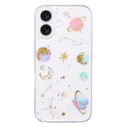 Funda de Teléfono TPU Epoxi iPhone 16 Plus Purpurina Estrellas Cósmicas (Rosa Transparente)