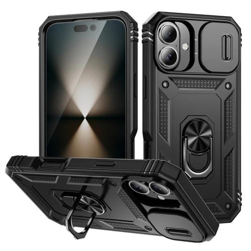 Funda para iPhone 16 Plus TPU y PC con Soporte Deslizante (Blanco y Negro)