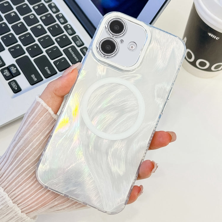 Funda TPU Magsafe para iPhone 16 Plus con Textura Enchapada y Película de Lente con Purpurina (Blanco)