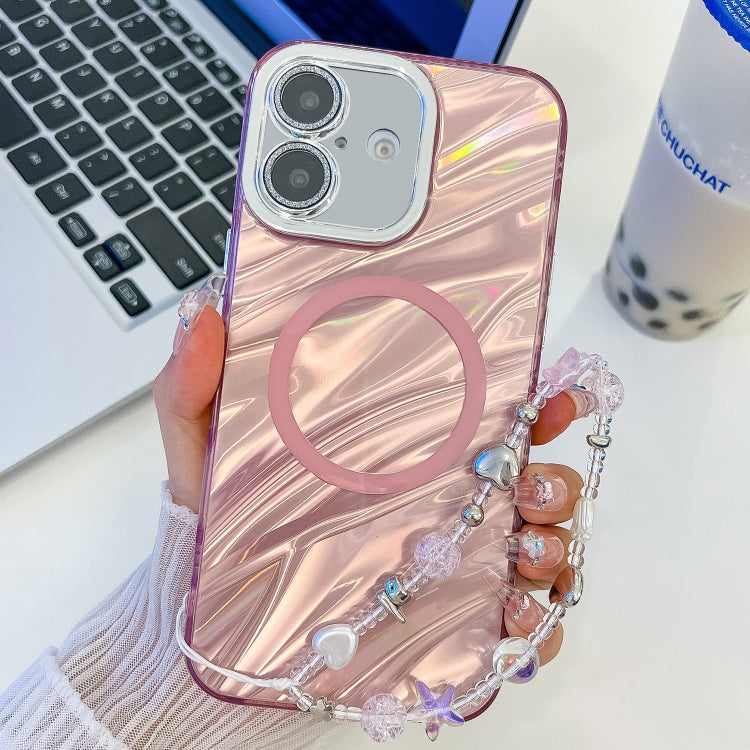 Funda para iPhone 16 Plus Textura Enchapada Correa Magsafe TPU (Ondas de Agua Rosadas)