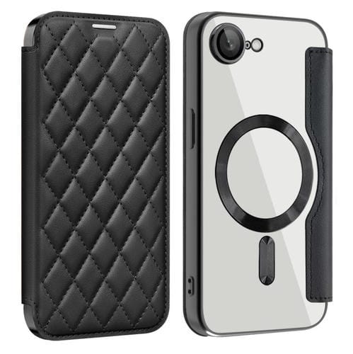 Funda de Cuero para iPhone 16E con Diseño de Rombos y Protección Rfid Magsafe (Negra)