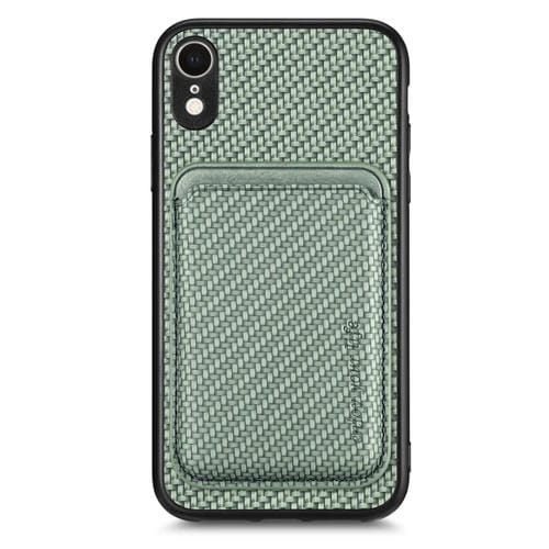 Funda para Teléfono Fibra de Carbono iPhone Xr con Bolsa de Tarjeta Magnética (Verde)