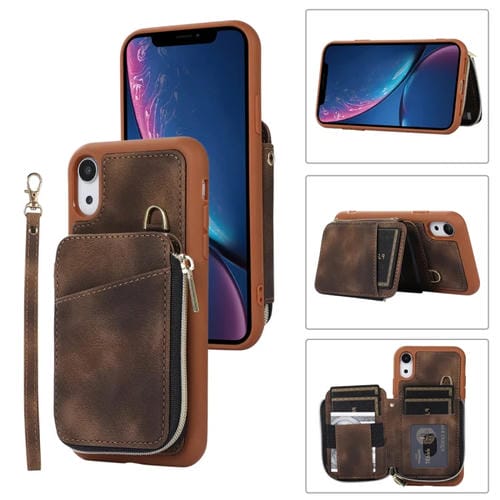 Bolsa Contraportada para iPhone Xr con Cremallera y Tarjeta (Marrón)