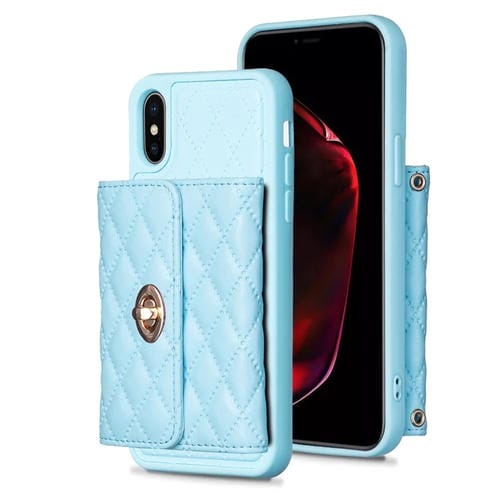 Caja de Teléfono de Cuero Rómbica Billetera con Hebilla Metal para iPhone X Xs (Azul)