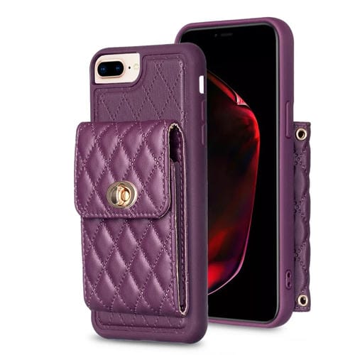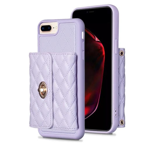 Estuche de teléfono iPhone 7 Plus 8 Plus Cuero Rómbico Hebilla Metal Vertical (Púrpura)