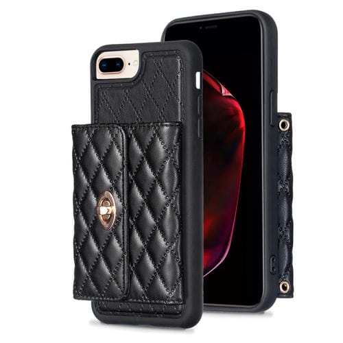 Estuche para teléfono Cartera iPhone 8 Plus 7 Plus Hebilla Metal Horizontal Cuero Rómbico (Negro)