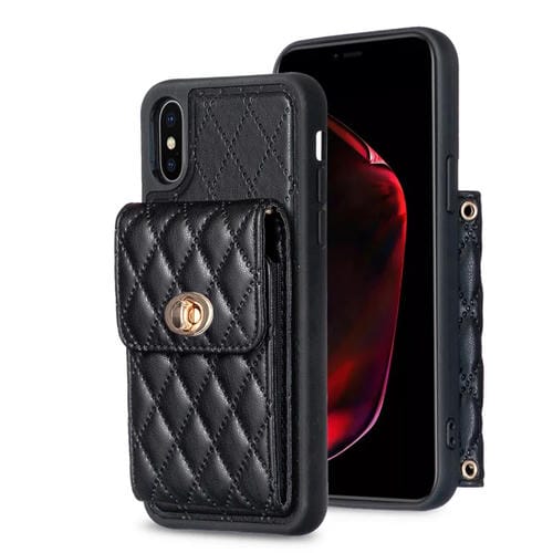 Caja de Teléfono de Cuero Rómbica Billetera con Hebilla Metal Vertical para iPhone X / Xs (Negro)