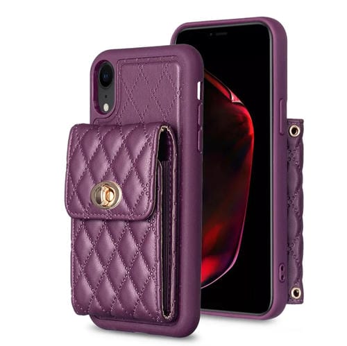 Caja de Teléfono de Cuero Rombal para iPhone Xr con Hebilla de Metal Horizontal (Púrpura)