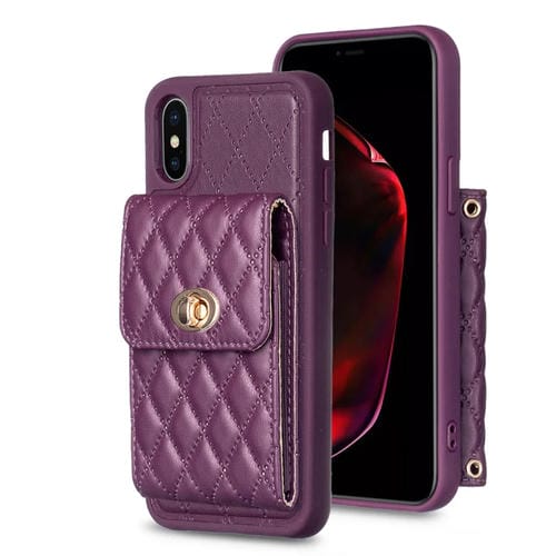 Caja de Teléfono de Cuero Rombal para iPhone X / Xs con Hebilla de Metal Horizontal (Púrpura)