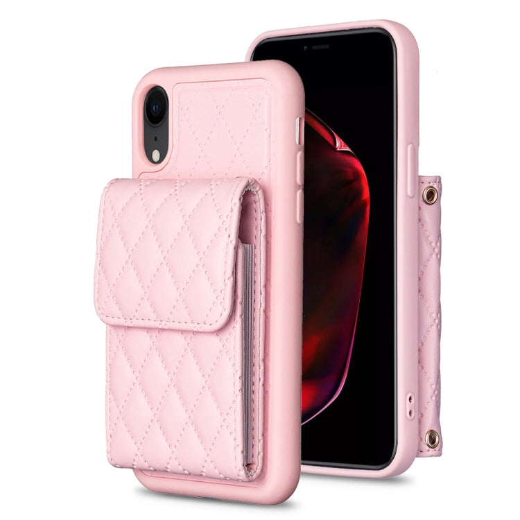 Funda para iPhone Xr Vertical Wallet Rhombic Leather Phone Case (Rosa)