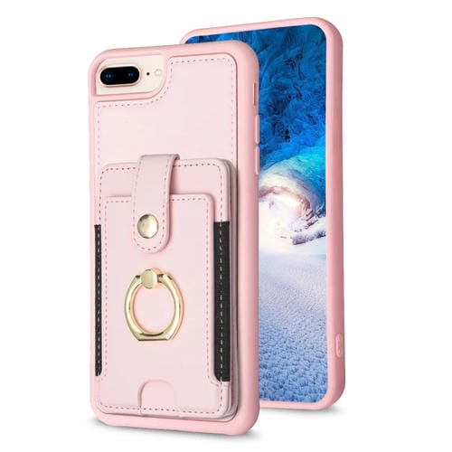 Funda para Teléfono Bf27 para iPhone 8 Plus y 7 Plus con Soporte para Tarjeta y Anillo de Metal (Rosa)