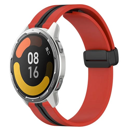 Correa de Silicona para Xiaomi Mi Watch Color 2 22mm con Cierre Magnético Plegable (Rojo + Negro)