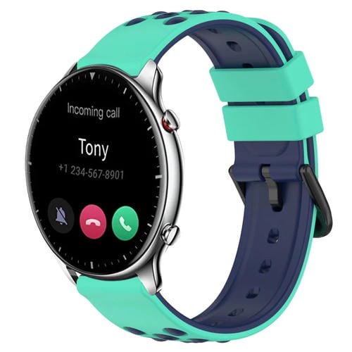 Correa de Reloj para Amazfit GTR 2 22mm Silicona Porosa Dos Colores (Verde Lima + Azul)