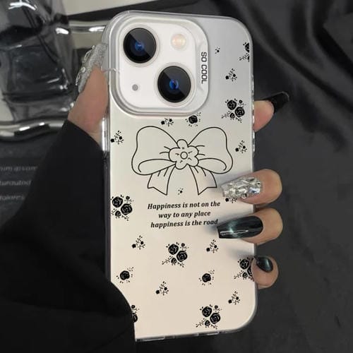 Funda híbrida TPU para iPhone 13 con pintura plateada y lazo floral blanco