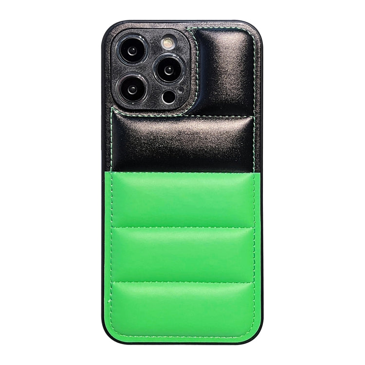 Funda para teléfono iPhone 15 Pro Max Color Block Down Jacket (Negro Verde)