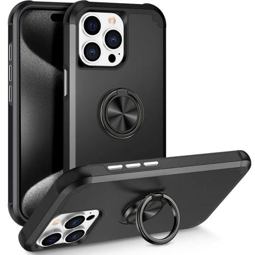 Funda Magnética para Teléfono iPhone 15 Pro Max L2 con Soporte de Anillo Giratorio (Negro)