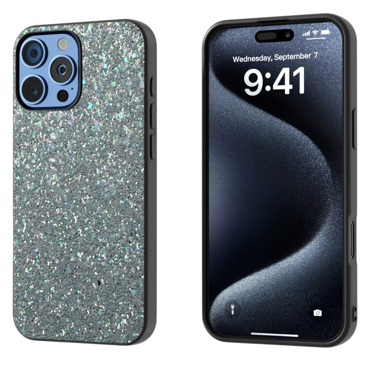Funda para iPhone 16 Pro Max Marco Negro Purpurina Prueba de Golpes (Plateada)